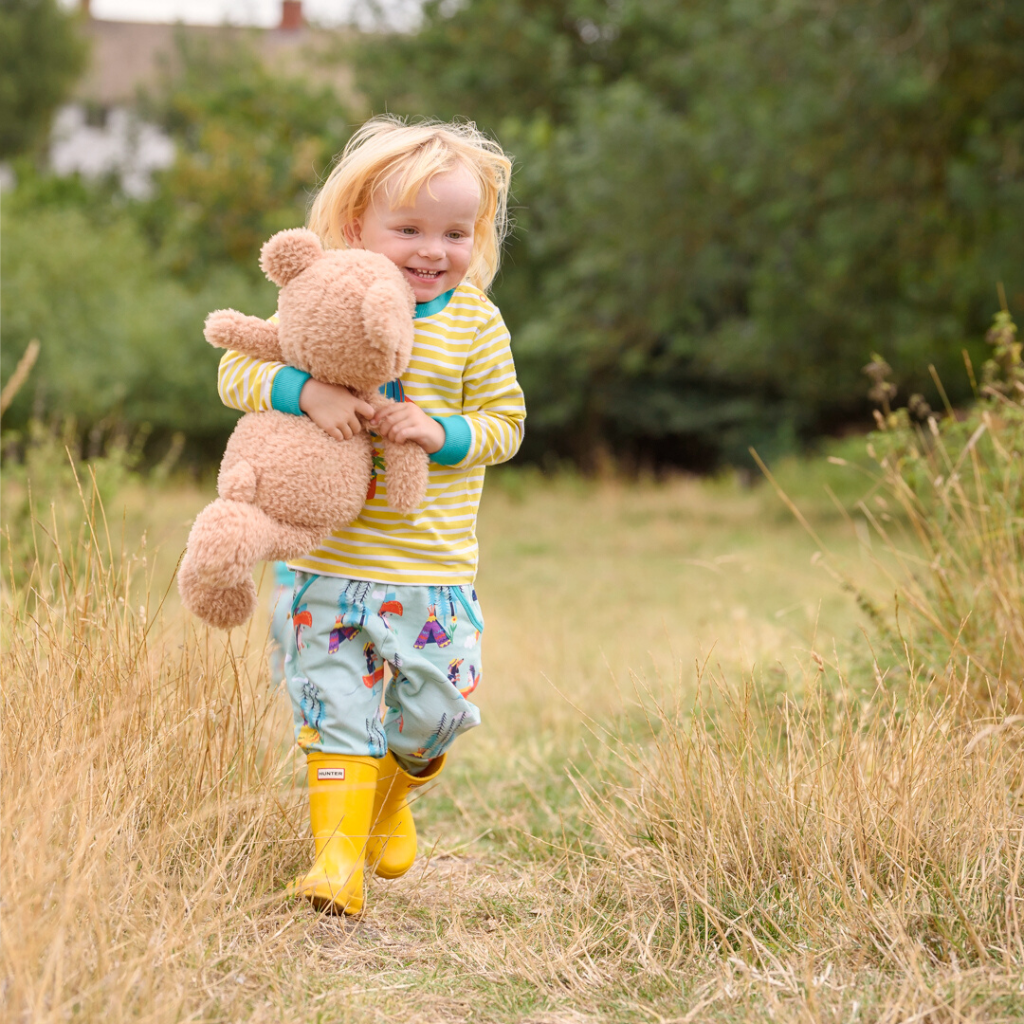 Check out our super fun soft organic cotton unisex trousers! Featuring deep pockets and a whimsical canoeing and camping print, these trousers are a perfect gift for a baby or child. Made from high-quality fabric with a unique 'kid-approved' design, they come with two deep pockets, an embroidered splash 'power button,' an elasticated waistband, and roll-down cuffs for extra length. Crafted from soft GOTS certified organic cotton, these trousers combine style, comfort, and practicality, making them a fantastic addition to any child's wardrobe.