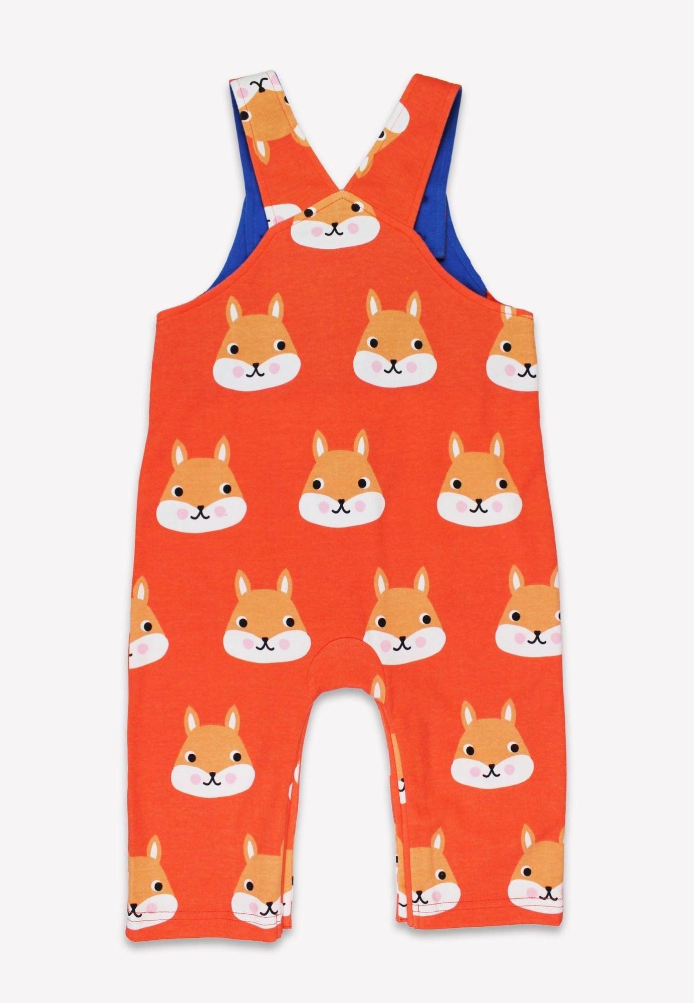 Have some adventurous fun with our Organic Squirrel Print Dungarees! Made from soft, organic fabric, these bright orange dungarees feature cute squirrel faces to inspire imagination. Perfect for active toddlers with handy pockets, adjustable straps, and convenient leg poppers for easy changes.